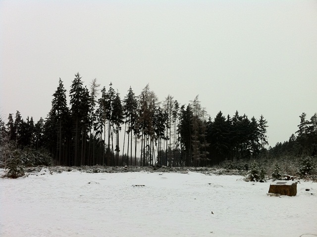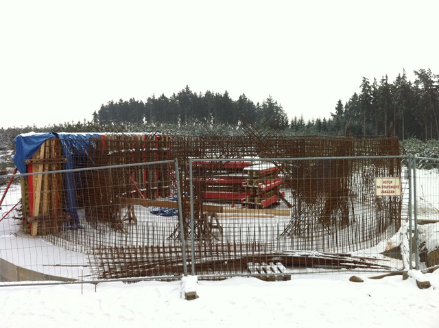 Na stavbě rozhledny se ale nic výrazného nezměnilo, pomalu pokračuje stavba bednění. Výrazně se změnilo okolí stavby, byly vykácené velké stromy u stavby směrem k silnici a ke Slatinicím (viz. fotky). Bylo jasné, že budou bohužel muset padnout, ale v kombinací s dnešním nevlídným a mrazivým počasím to tam bylo takové smutné.